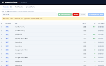 API Regression Tester is a Chrome extension designed to streamline the process of regression testing for JSON REST APIs. This tool allows users to record real API calls while interacting with a web application and replay them later to identify any changes or regressions in the API responses. Key features include recording sessions, real-time logging of responses, and a user-friendly interface for managing test sessions. The extension also provides functionalities like URL filtering, performance monitoring, and automatic token handling to enhance the testing experience.